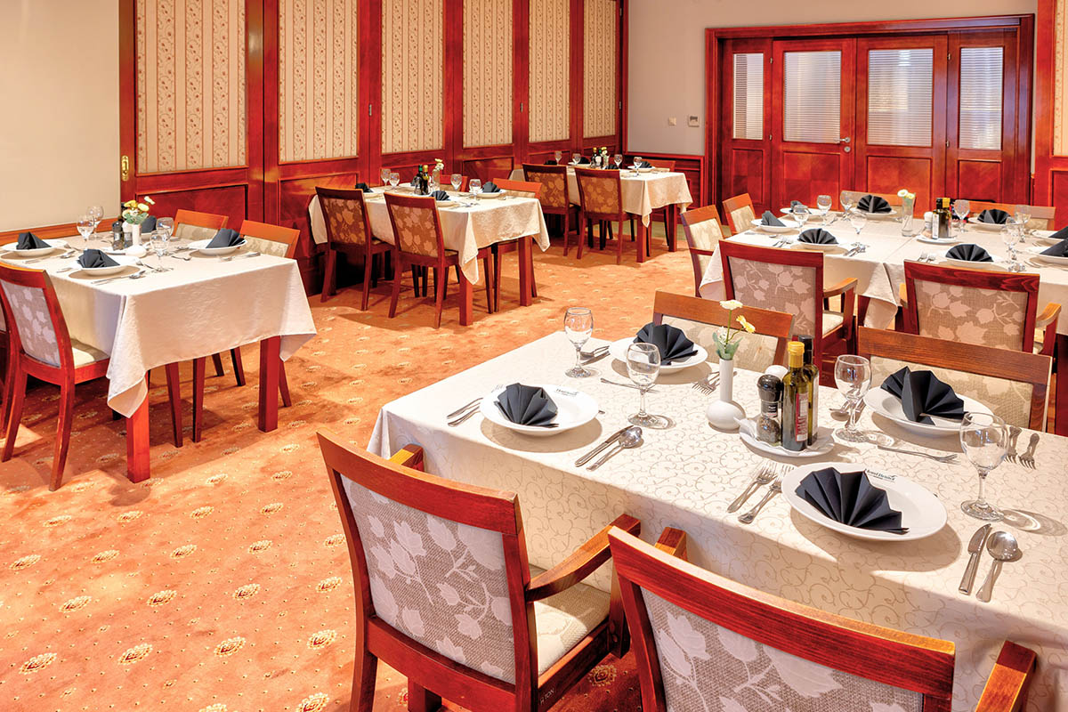 Hotel “Bristol” raspolaže sa dva restorana sa izvanrednom gastro ponudom. Restoran hotela “Bristol” raspolaže sa ukupnim kapacitetom od 170 mjesta: 140 mjesta u unutrašnjem dijelu i sa 30 mjesta u vanjskom dijelu, na terasi.