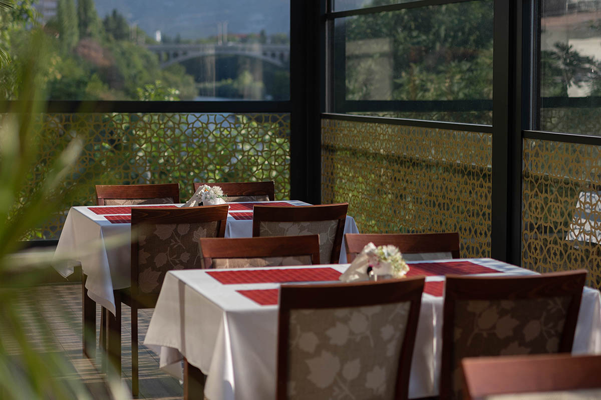 Restoran Vam nudi domaće i internacionalne specijalitete, jedinstven osjećaj te prekrasan pogled na rijeku Neretvu.
